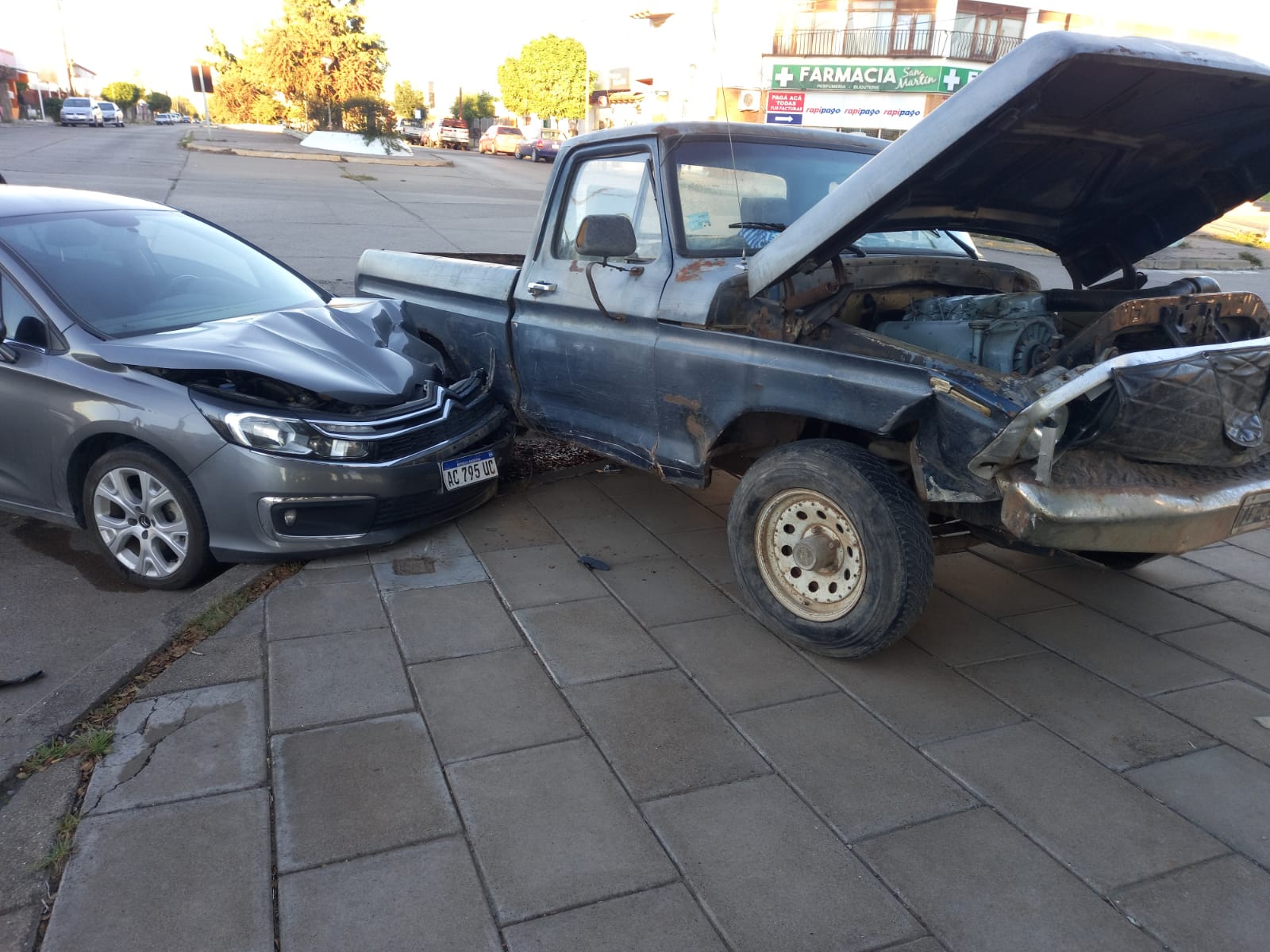 Los rodados involucrados son un automovil Citroen c4 conducido por una mujer mayor.de.edsd mientras el otro rodado una camioneta Ford F100 era conducido por un masculino que no poseia seguro obligatorio.