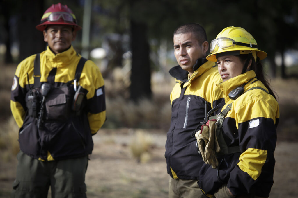 Participan en la línea combatientes del SPMF, de las brigadas del SNMF de Patagonia, Centro y NOA, del SPLIF El Bolsón, de parques nacionales, del SPMF de Neuquén, y bomberos voluntarios de El Hoyo y Lago Puelo. También un grupo de vecinos coordinado por jefes de sector en el monitoreo desde fajas cortafuego.