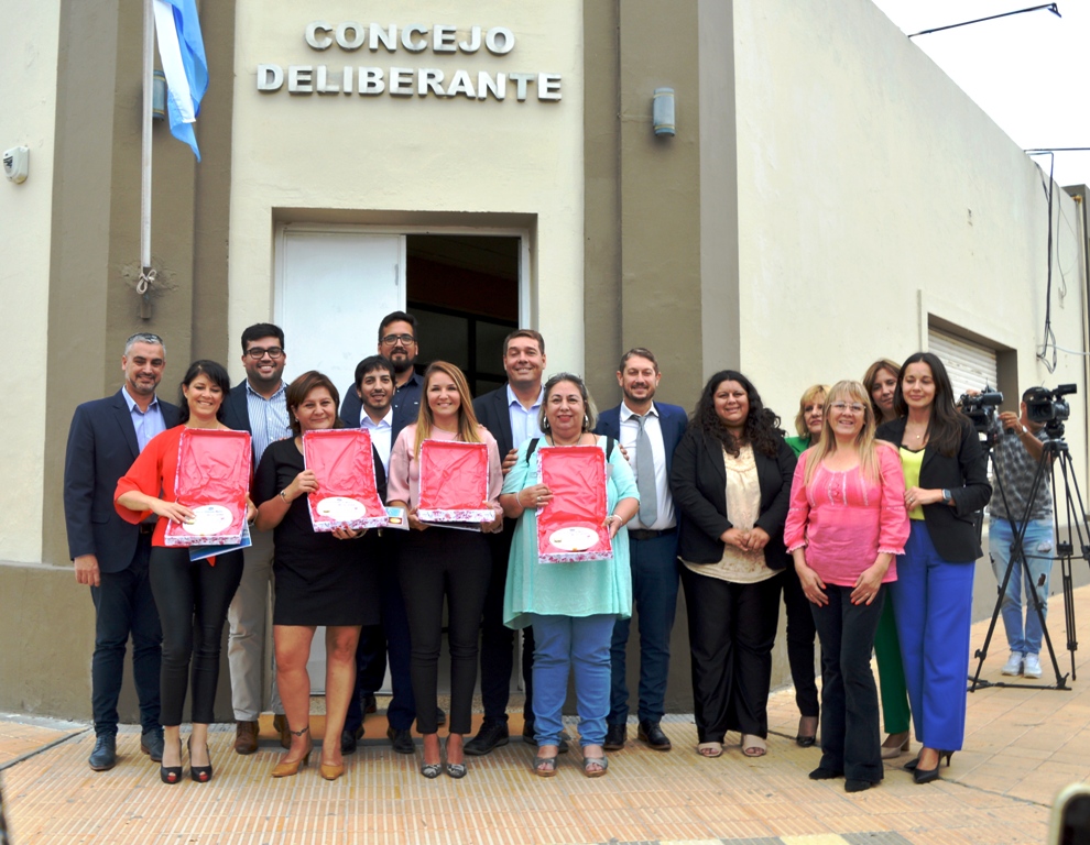 El reconocimiento le fue otorgado por el presidente del cuerpo de concejales Dulio Monti y el intendente Damián Biss, además del cariño y saludo de sus pares de la bancada, situación que la lleno de emoción por lo sorpresivo del acto de reconocimiento que no estaba previsto dentro del programa organizado.