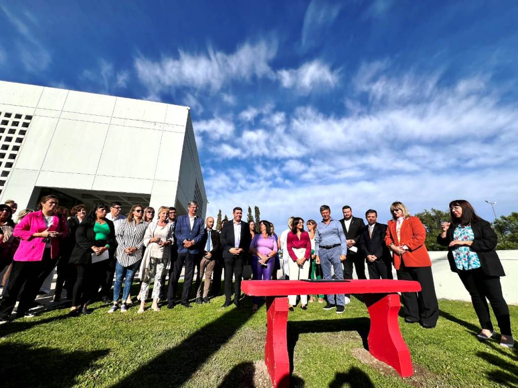 El Banco Rojo es una iniciativa mundial y cultural de prevención, información y sensibilización contra la violencia de género, y en esta ocasión fue instalado en el exterior de la Legislatura con una placa en la que se lee: “En memoria de todas las mujeres asesinadas por femicidio. No naturalicemos la violencia contra las mujeres”.