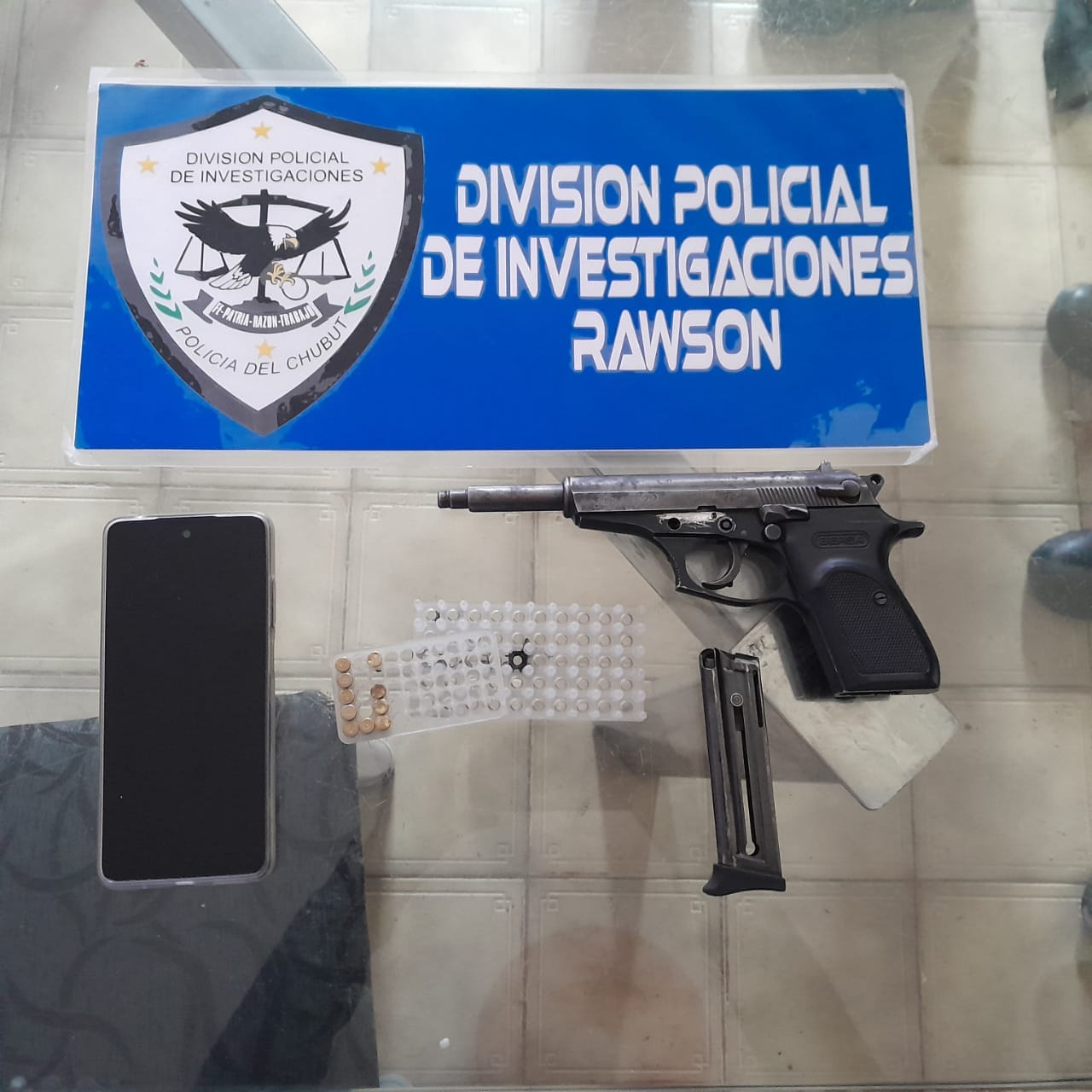 Entre los elementos hallados de interés para la causa judicial se secuestró telefonía celular y un arma de fuego de puño, tipo pistola marca Bersa calibre 22 mm con numero de corredera limada/erradicada, con su respectivo cargador y nueve cartuchos a bala calibre 22 mm.