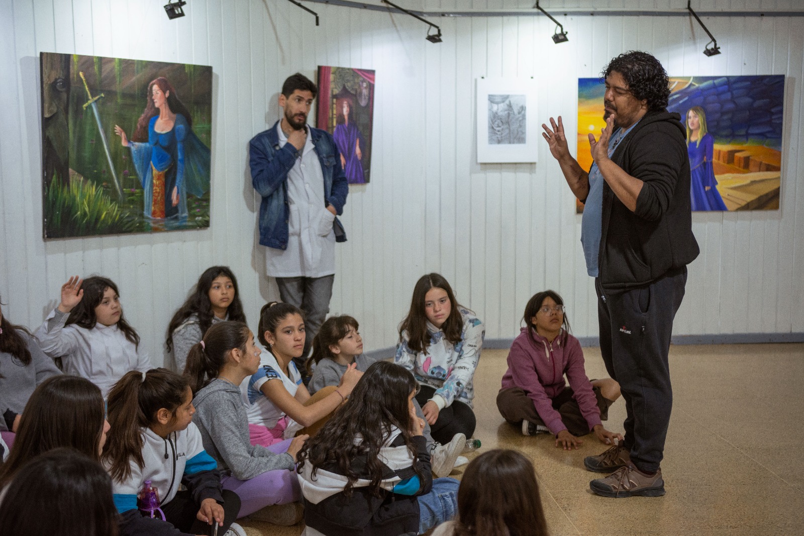 “Fue una visita guiada por el artista. Los chicos tuvieron la posibilidad de ver personajes fantásticos de la cultura celta, porque la muestra está muy relacionada con los duendes, hadas, con la leyenda del dragón rojo de Gales”, dijo al respecto la coordinadora de Patrimonio Histórico y Museos de la Municipalidad de Rawson, Patricia Lorenzo.