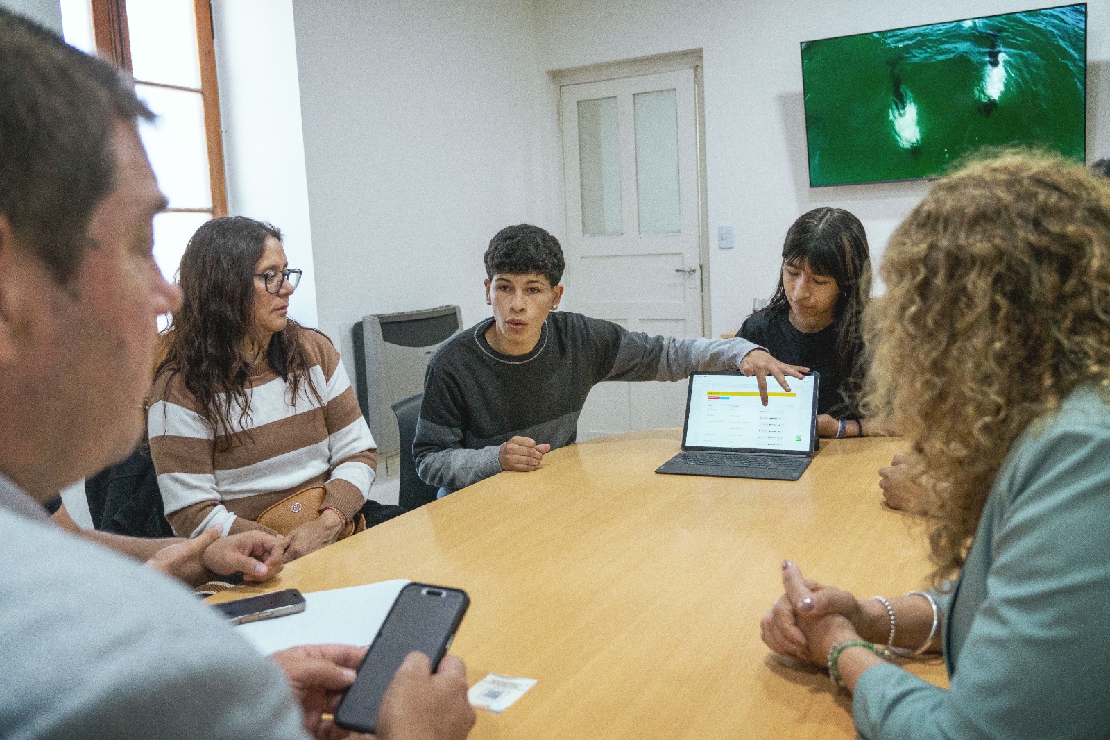 En el despacho municipal, el intendente Biss recibió a los estudiantes acompañados por sus docentes. Participaron también la directora general de Acción Educativa, Formal y No Formal, Gabriela Locaso, y el concejal Juan Flores Revillot. El mismo se presentará del 29 al 31 de octubre en la Feria Nacional, que reunirá a estudiantes y docentes de todo el país.