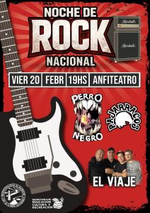 Con una propuesta para el público rockero, el viernes 20 se presentará la “Noche de Rock Nacional”, con la participación de las bandas locales Perro Negro, Pajarracos y El Viaje, que interpretarán un repertorio orientado a los clásicos y a las nuevas expresiones del género.