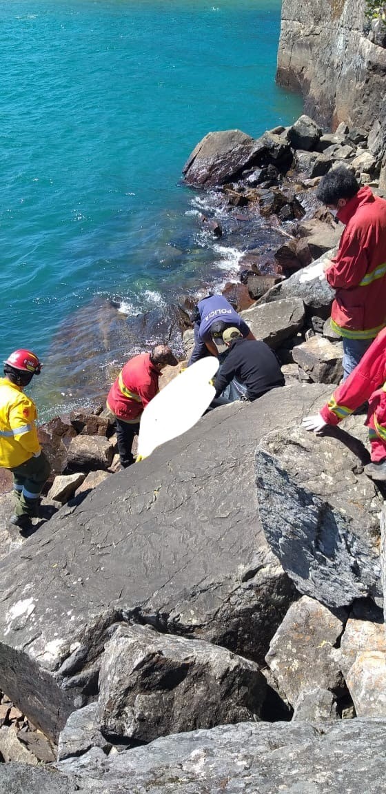 Arribado al lugar personal policial, bomberos y del parque, se constata efectivamente la existencia de una persona sin vida. Se trataba de un masculino, mayor de edad, ubicado entre las rocas y debajo del mencionado mirador.