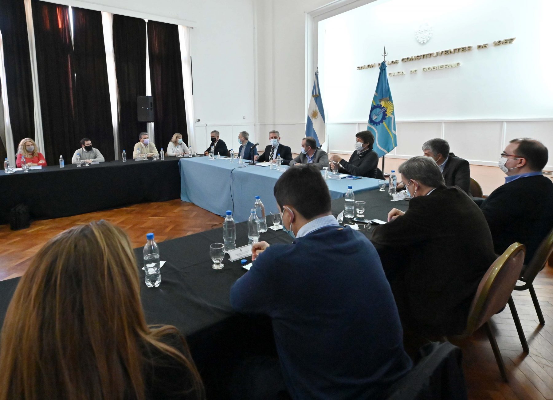 El encuentro se desarrolló en el Salón de los Constituyentes de Casa de Gobierno y participaron los ministros de Gobierno y Justicia, José María Grazzini, de Infraestructura, Energía y Planificación, Gustavo Aguilera, de Economía, Oscar Antonena, de Salud, Fabián Puratich de Desarrollo Social, Familia, Mujer y Juventud, Gustavo Hermida, de Hidrocarburos, Martín Cerdá, el fiscal de Estado, Andrés Giacomone, secretarios y subsecretarios de área y presidentes de entes.