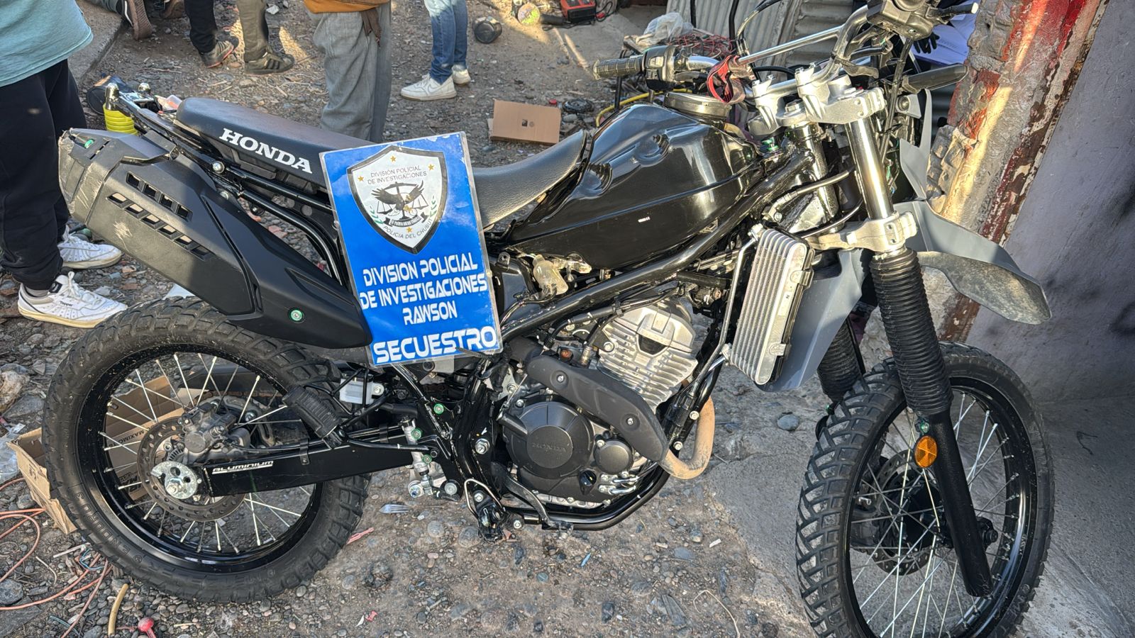 El pasado viernes personal policial de la División Policial de Investigaciones de la ciudad de Rawson en relación a una investigación por un delito de hurto automotor de una motocicleta ocurrido en el mes de junio en esta ciudad, en virtud a ello mediante tareas de pesquisa y lineamientos de investigación a cargo de la Funcionaria Fiscal Dra. Sandoval (perteneciente al MPF RW), en horas de la tarde se ejecutaron dos diligencias de allanamientos y registro domiciliario contra dos inmuebles ubicados en el Área 12 de la capital chubutense.