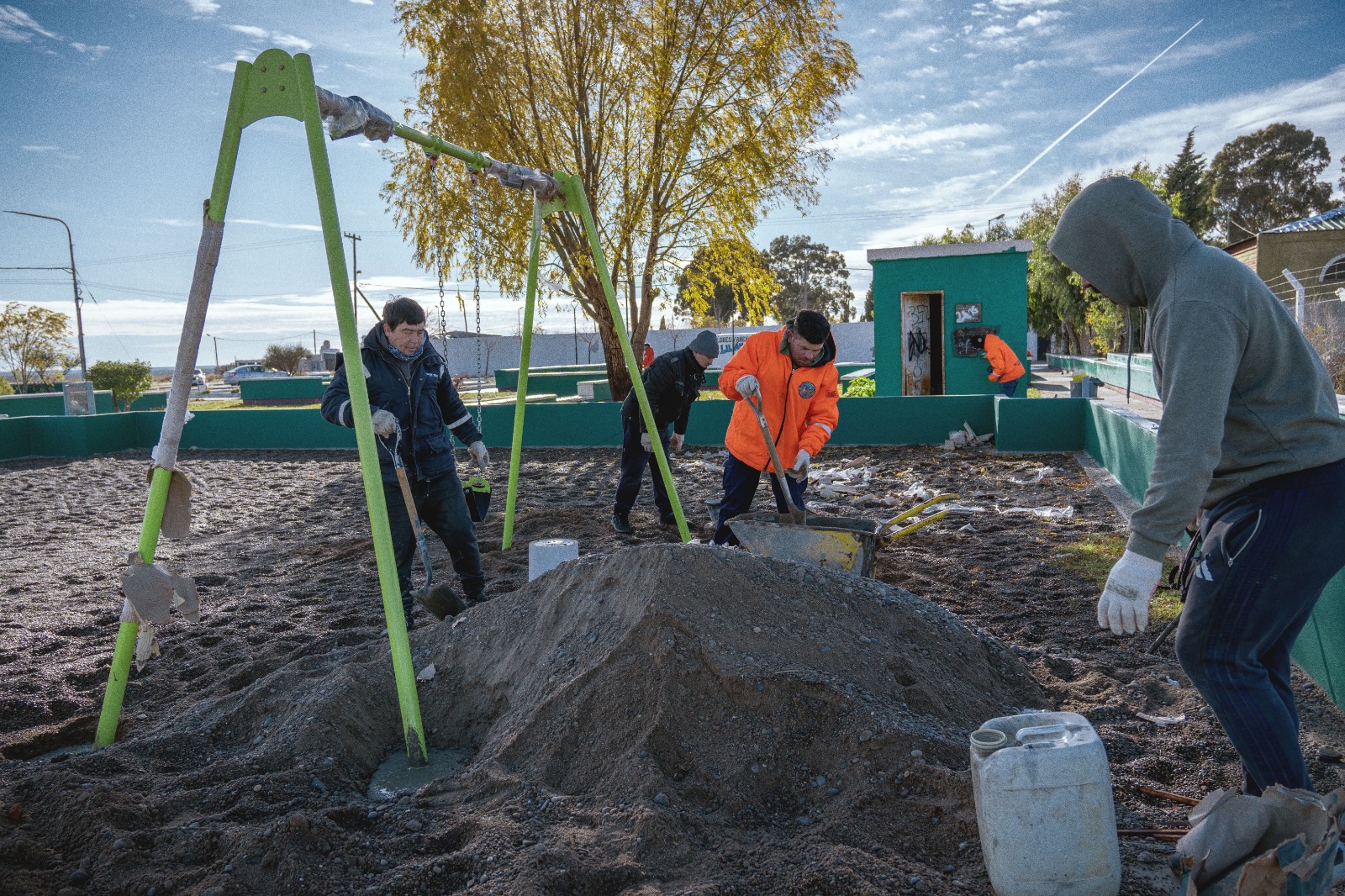 En el marco del programa de recuperación de plazas y sectores urbanos, los trabajos comprenden la reposición completa del sistema de iluminación, la pintura de bancos y sectores estructurales, y la renovación total de los juegos infantiles. Aunque los juegos existentes se encontraban aún en estado funcional, fueron retirados para ser reemplazados por equipamiento moderno y seguro, pensado para el uso adecuado de niñas y niños.