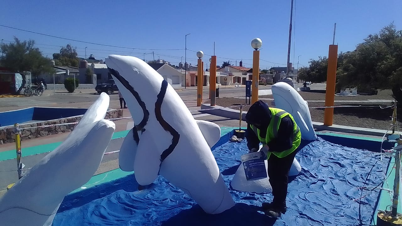 “También se recuperaron algunas aletas que estaban dañadas, se trabajó con cemento y aditivos para recuperarla en forma íntegra, embelleciendo de forma total las esculturas y el sector en su totalidad”, cerró el subsecretario de Obras Públicas.