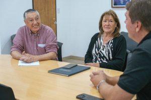 El encuentro, realizado en el despacho municipal, contó con la presencia de la presidenta del Consorcio, Ana María Paolasini, y los representantes Enrique Collazo y Juan Bonamino, oriundos de Trelew. Durante la reunión, se abordó la situación de una chacra previamente fraccionada, cuyo proceso de regularización está en curso.