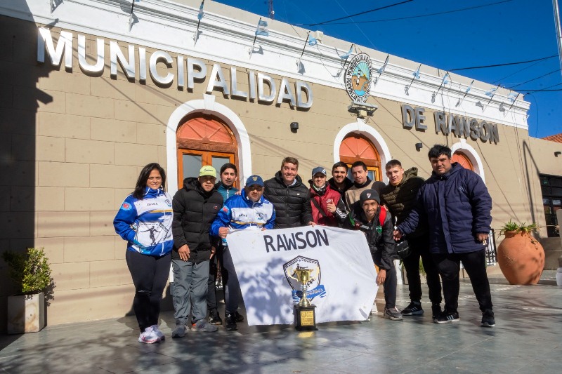 Luego del viaje a Comodoro Rivadavia, los jugadores, entrenadores y el presidente de la Liga Amateur de Fútbol Junior de Rawson, Ricardo Chamorro, visitaron al intendente de la capital provincial, Damián Biss, para mostrarle la nueva copa.