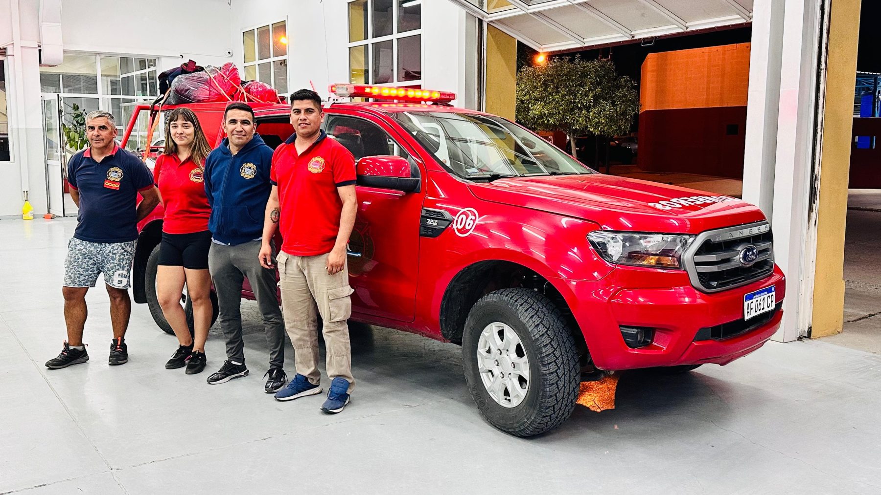 A las 22 horas, aproximadamente, llegaron los bomberos de Rawson de regreso a la ciudad luego de una semana de arduo trabajo en la extinción de un incendio forestal en la región. Aunque el fuego aún no está completamente controlado, cumplen con su tarea de relevo según los protocolos establecidos por la federación.