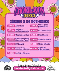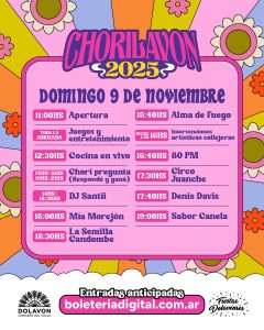 A través del Chorilavon se refuerza la identidad dolavense, el sentido de pertenencia y el orgullo por las tradiciones locales, en una propuesta que combina música, feria, gastronomía y celebración popular. “Vení a bailar y a disfrutar con la familia y con amigos. Porque Chorilavon no es sólo una fiesta, es una experiencia que se vive, se siente y se repite cada año” indicaron desde la organización e invitaron a los vecinos y visitantes de toda la provincia a disfrutar del evento más esperado del año.