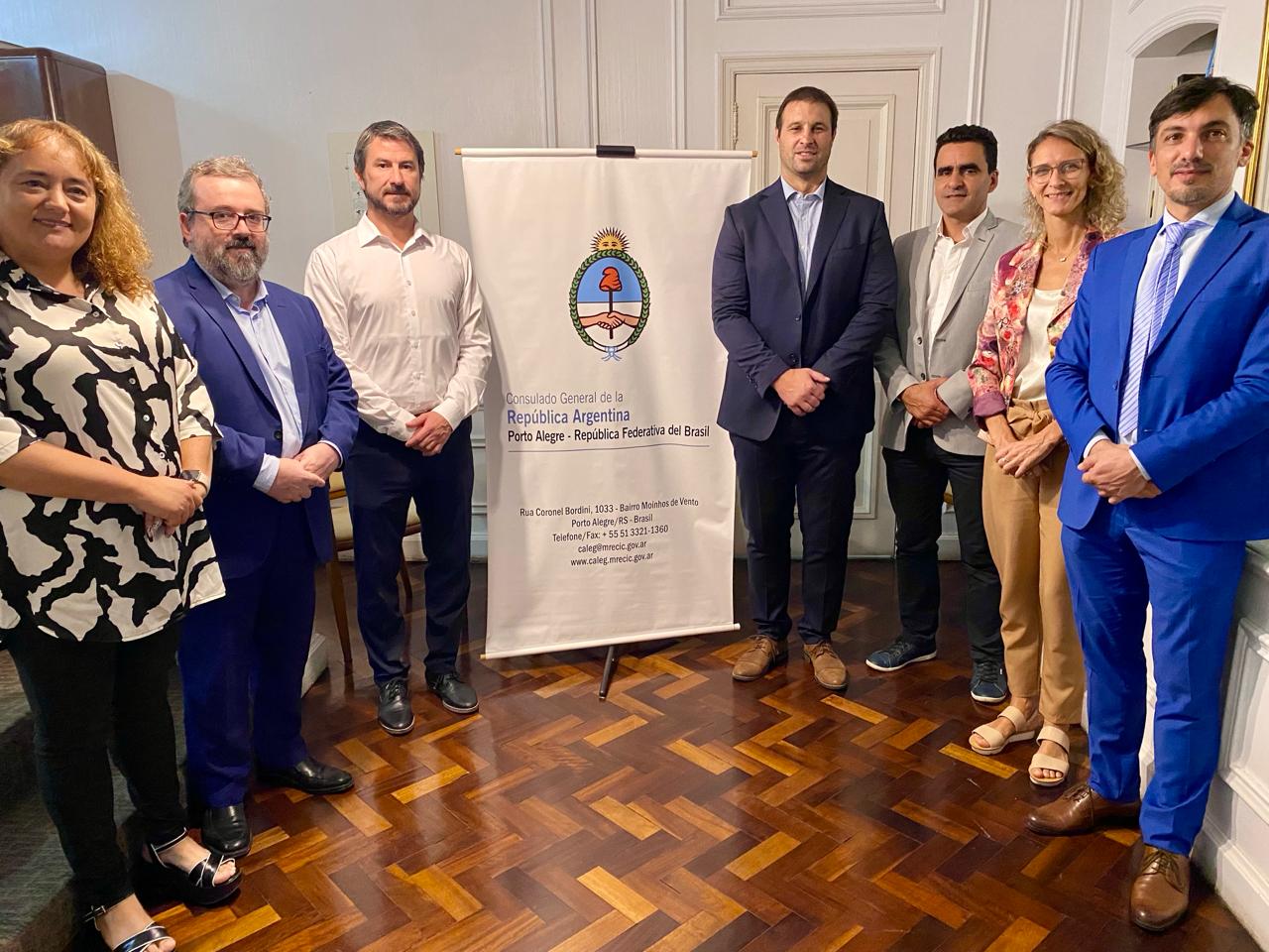 En Porto Alegre, se reunieron con Jairo Gund, director Ejecutivo de ABIPESCA, y Rafaela Bittencourt (Ventas internacionales PamaFoods), y luego con el director adjunto de Promoción Comercial y Asuntos Internacionales, Sebastián Watenberg, acompañados por el el cónsul argentino en Porto Alegre Gabriel Servetto, y Hernán Palmieri, cónsul adjunto.