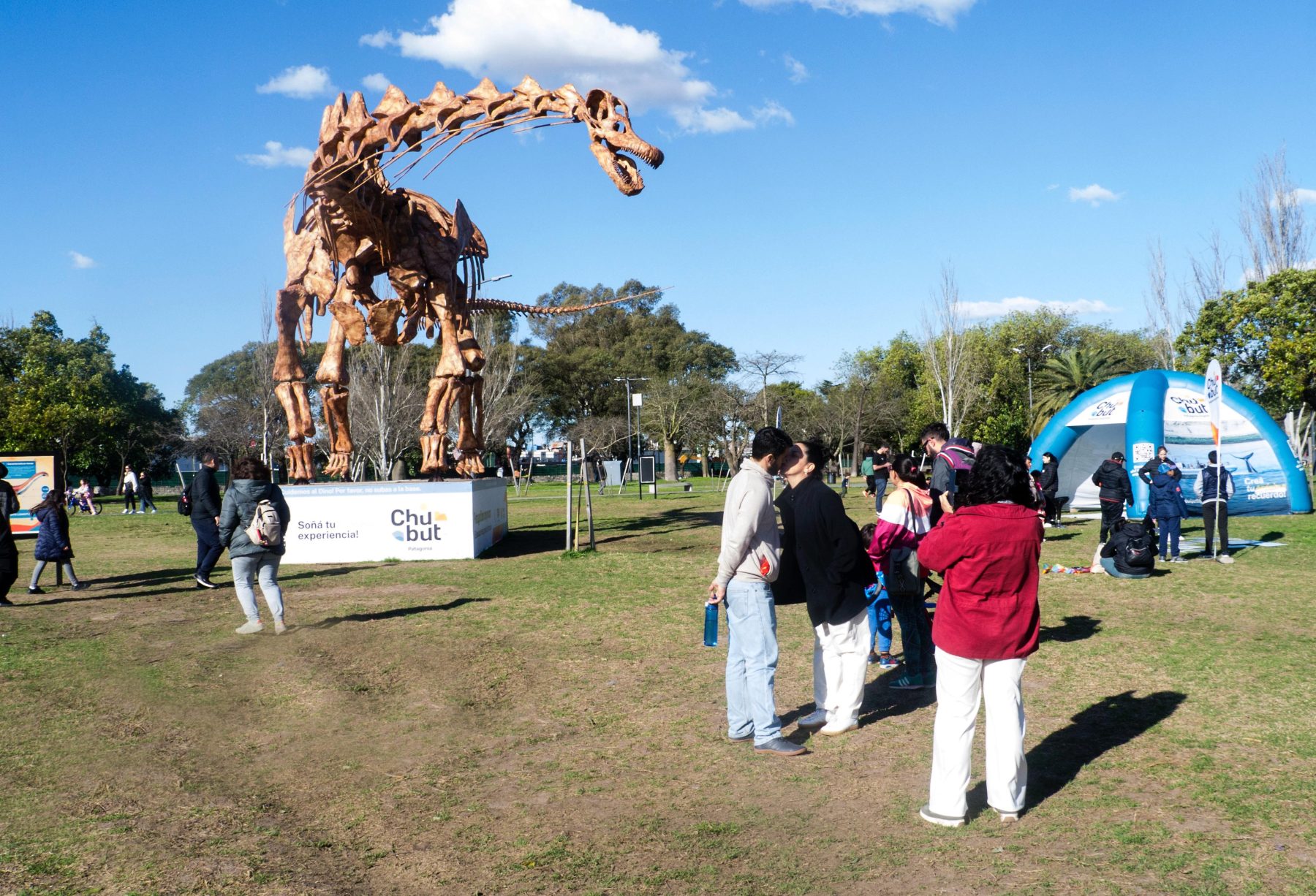 En el marco de la política de promoción turística de los destinos chubutenses que viene implementando desde el inicio de su gestión el gobernador Ignacio “Nacho” Torres, el Gobierno del Chubut desplegó en Buenos Aires una imponente réplica del Patagotitan mayorum, el dinosaurio más grande del mundo, llamando poderosamente la atención de quienes se acercaron a observarlo en su lugar de emplazamiento: el popular Parque Thays, ubicado al lado de la Facultad de Derecho de la Universidad de Buenos Aires (UBA).