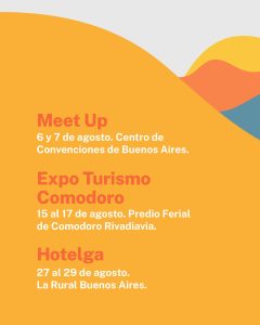 También la provincia tendrá una activa participación en la Expo Turismo Comodoro del 15 al 17 de agosto en el Predio Ferial de Comodoro Rivadavia, donde se destacan las propuestas regionales y el potencial turístico del sur provincial.