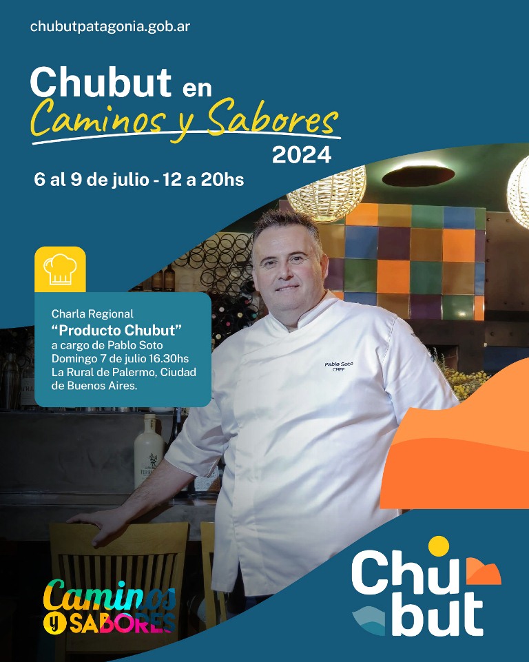 Allí, el cocinero realizará un plato de origen con productos distinguidos con el Sello ORIGEN CHUBUT y brindará una charla sobre el turismo enogastronómico en Chubut.