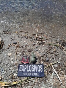 En total, se contabilizaron seis granadas de mano, de las cuales cinco fueron halladas durante el mes de diciembre pasado y la restante fue detectada mediante las tareas realizadas por efectivos policiales en el interior del lago, quienes continúan con los trabajos de investigación y la búsqueda de otros posibles artefactos explosivos en la zona.