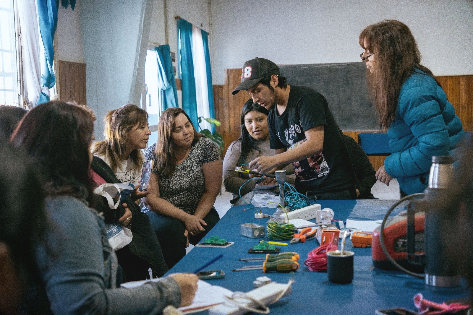 El encuentro se desarrolló en Rawson con la participación de alrededor de 20 mujeres, quienes realizaron ejercicios prácticos de reparación de electrodomésticos y elementos como alargues, veladores y moladoras.