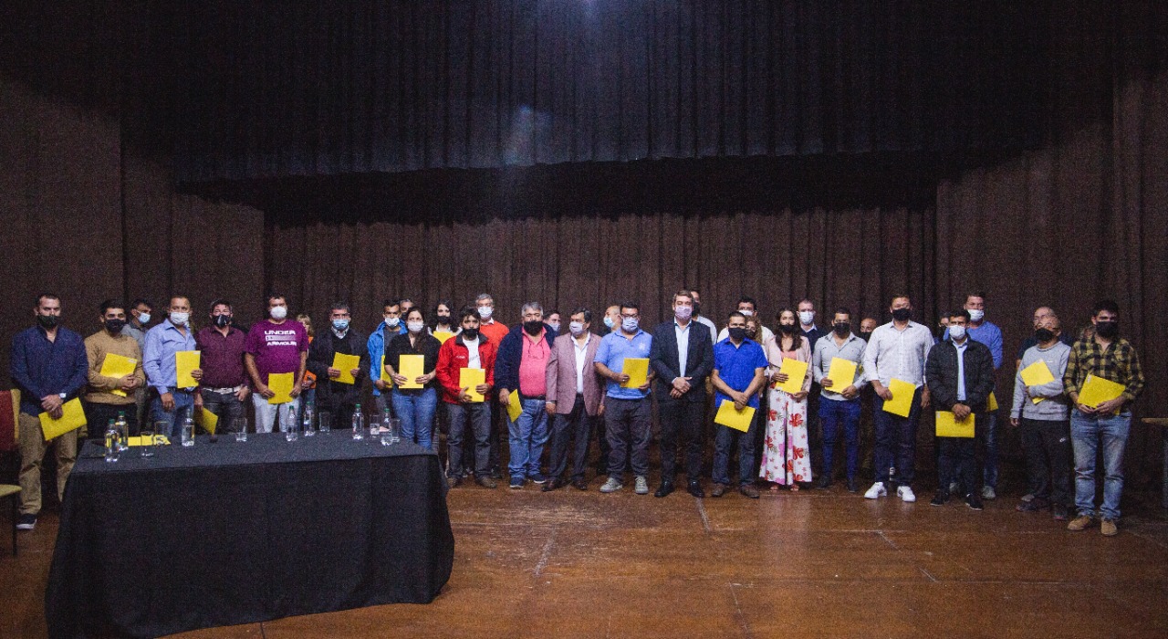 Además rubricaron sus contratos Sofía Costa (Mundo herrajes, comercialización de insumos de carpintería, confección de amoblamientos, fabricación de oficinas modulares); Alejandro Caminoa (Bonfilio SRL, fábrica de helados); Rosana Rocha (SIS SRL, reciclado de neumáticos y alquiler de módulos móviles); Juan Agustín Iralde (CYMSEG SRL, construcción de redes de agua, gas, electricidad, cloacas y obras civiles).