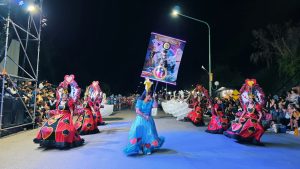 Carrozas, murgas y personas disfrazadas acompañaron el desfile, aportando creatividad y alegría a la celebración y dándole un toque especial a la noche, con propuestas que invitaron a grandes y chicos a sumarse al espíritu del carnaval. El escenario musical también tuvo un rol destacado, con la participación de artistas locales y regionales como Mía Morejón, Juanjo del Prado, Fran RD y Wiz, Maxi y su Cumbia de Barrio y el Grupo Ñara, quienes hicieron bailar y disfrutar al público, reforzando el clima festivo de esta primera noche.