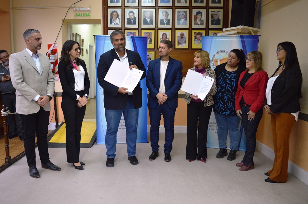El pasado miércoles 5 de junio y previo al desarrollo de la octava sesión el presidente del Concejo Deliberante de Rawson, Dulio Monti encabezó una sencilla ceremonia en la cual entregó al Mag.Marcos Kupczewski, en su carácter de Delegado Zonal Sede Trelew de la Universidad Nacional de la Patagonia San Juan Bosco, dos declaraciones aprobadas por el cuerpo legislativo, referidas a dicha institución académica.