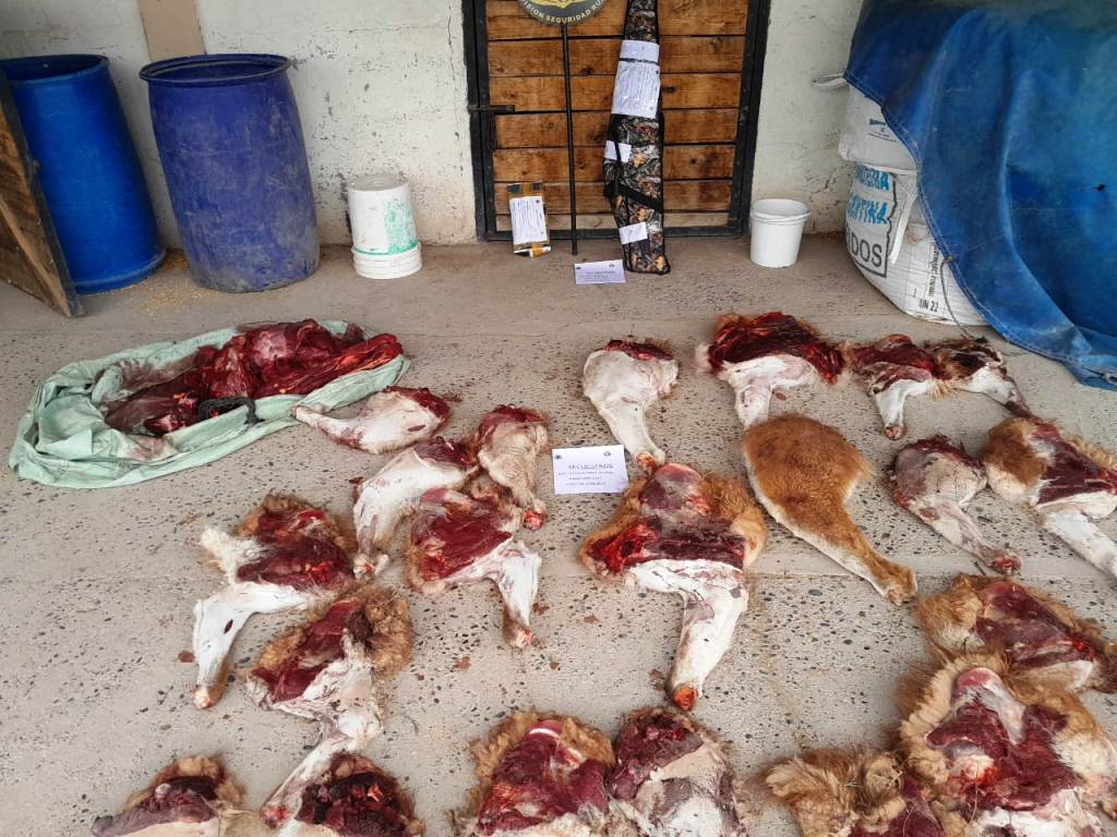 Se constata que transportaban seis guanacos depostados: con 12 paletas; 12 cuartos; 9 lomos; 6 lomillos y 3 corazones de animales que habrían sido recientemente cazados, sin permios de caza, Se observa en el interior del rodado armas largas, armas blancas tipo cuchillos.