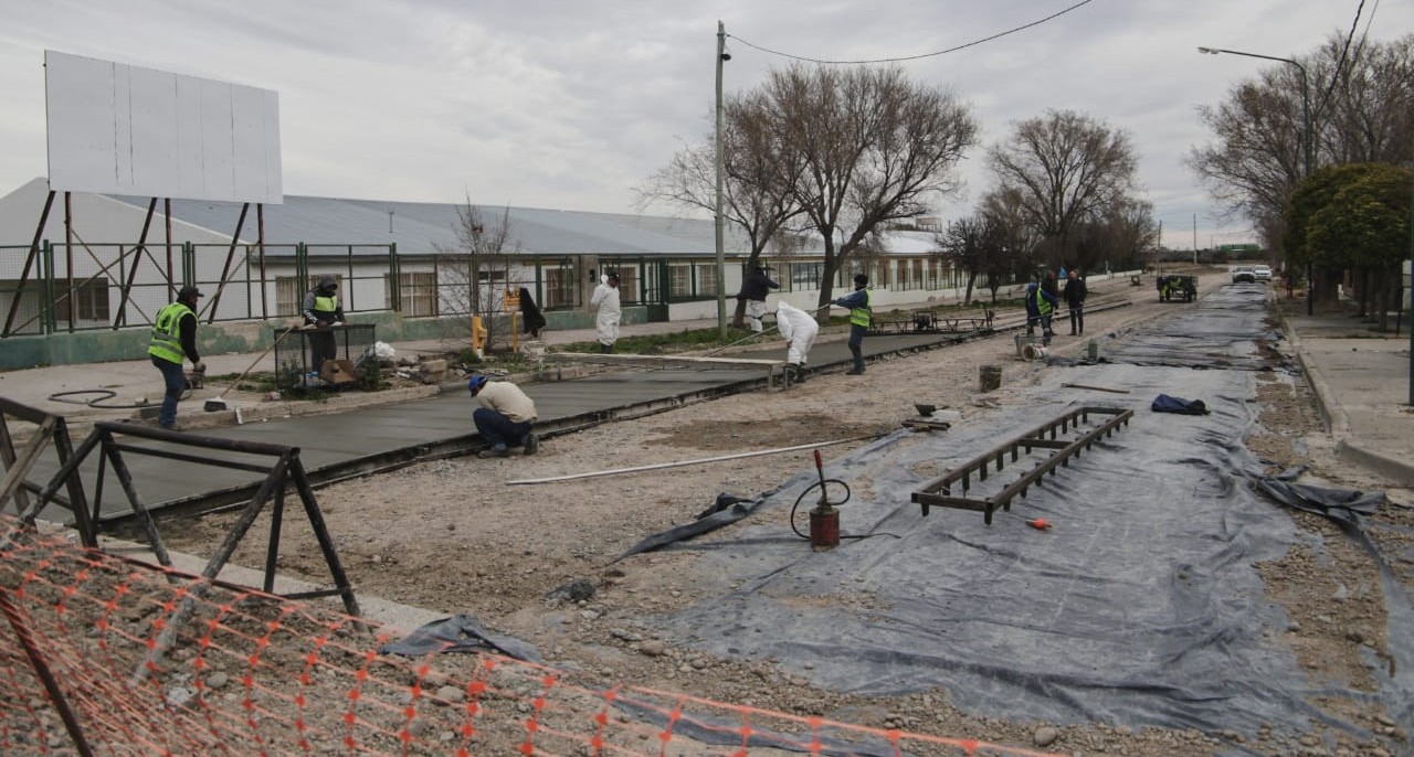 Por intermedio del Programa “Argentina Hace” se está ejecutando la obra de pavimentación en el acceso a la Escuela 185, espacio en el que además funciona la Escuela de Nivel Secundario No 7705 y otras entidades educativas.