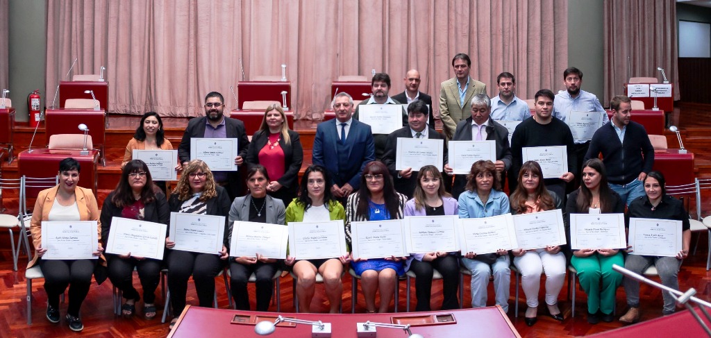 En la oportunidad, recibieron sus diplomas los titulares de los Juzgados de Paz de 28 de Julio, Bárbara Xiomara Larrosa; de Aldea Beleiro, Estela María Tapia; de Alto Río Senguer, Luciano Omar Funes; de Buen Pasto, Micaela Noemí Rodríguez; de Camarones, Ruth Silvina Salazar; de Corcovado, Horacio Arturo Sánchez Marín; de Dique Florentino Ameghino, Evaristo del Carmen Méndez; de Dr. Ricardo Rojas, Miryam Noemy Espinoza; de El Hoyo, Mónica Beatriz Trangol; de Facundo, Marcelo Andrés Fernández; de Río Pico, Valentín Argentino Saavedra; de Paso de Indios, David Fabián Reginao; de Telsen, Alberto Ramón Martínez; de José de San Martín, Pablo Moisés Behar; de Lago Blanco, Nieves Magdalena García Castillo; de Colán Conhue, Mirta Noemí Lisazu; de Las Plumas, Gladys Mabel Carranza; de Paso del Sapo, María Cristina Barrera y de Carrenleufú, Vanesa Ayelén Rosas.