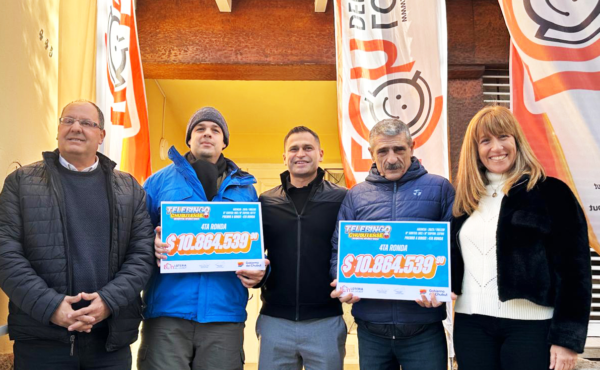 Dos apostadores de la ciudad de Trelew recibieron un cheque por 10.864.539 pesos cada uno, correspondientes al Bingo de la Cuarta Ronda del sorteo del Telebingo Chubutense, realizado el 21 de junio pasado.