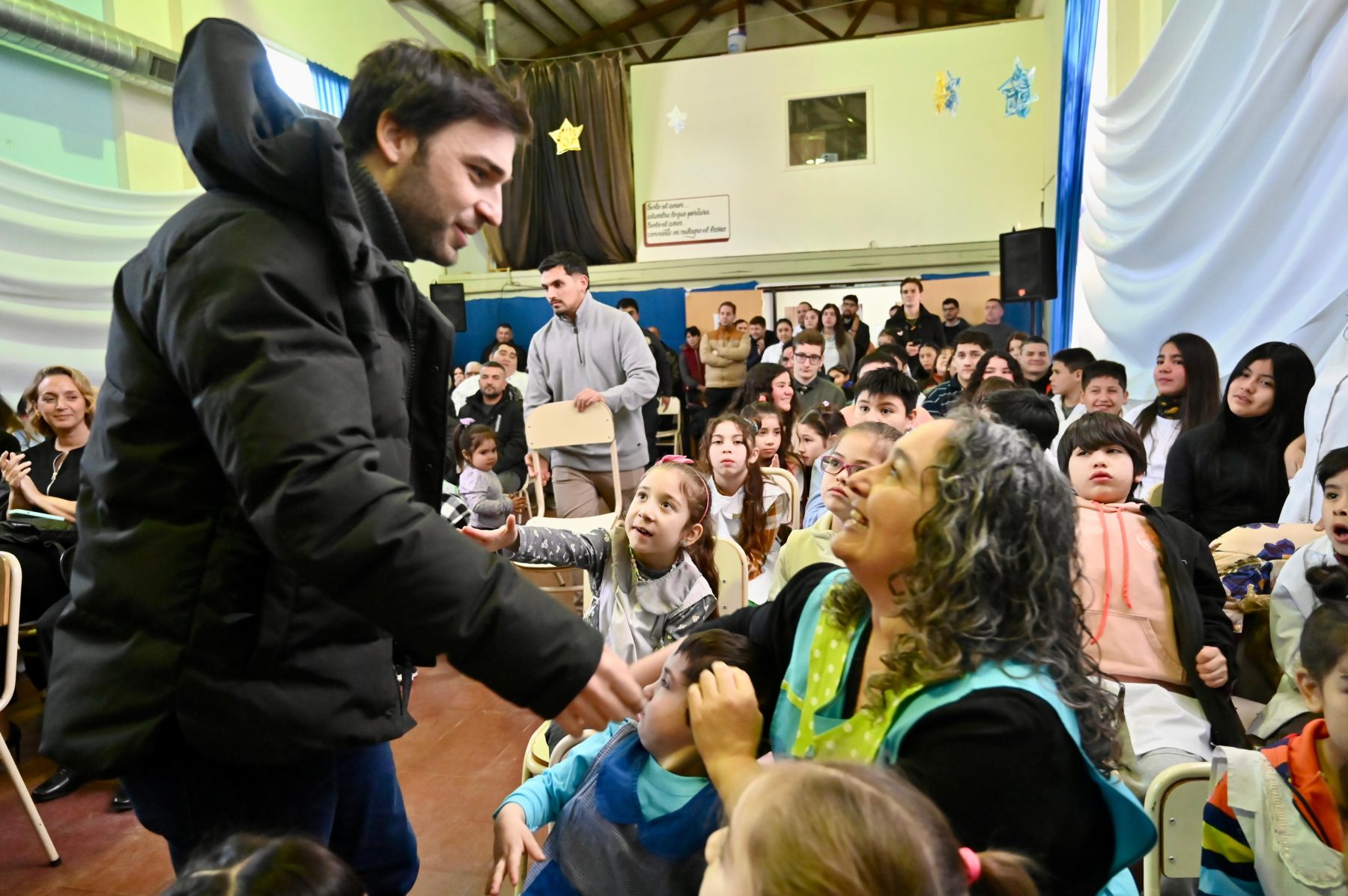 “Esa energía se genera a través de nuestros recursos”, aclaró el titular del Ejecutivo durante el acto central desarrollado esta mañana en el Salón de Usos Múltiples de la escuela N° 56, establecimiento que también celebró un nuevo año de su fundación. La ceremonia contempló, además, la firma de un acuerdo para construir cuatro viviendas sociales y la entrega de mobiliario y electrodomésticos a diferentes entidades de la comuna.