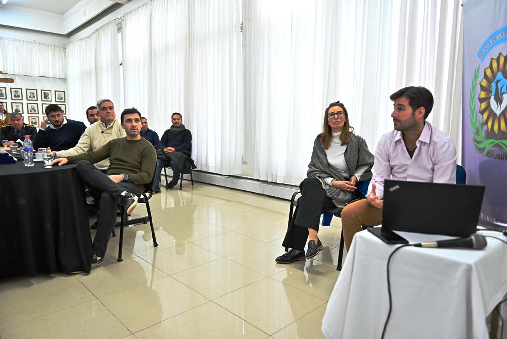 Del encuentro participaron, además, el ministro de Seguridad, Héctor Iturrioz; el subsecretario de Justicia, Rodrigo Miquelarena; el Procurador General de Chubut, Jorge Miquelarena; el fiscal de Estado, Andrés Giacomone; el jefe y subjefe de la Policía, Andrés García y Mauricio Zavala, respectivamente; y la diputada provincial Andrea Aguilera.