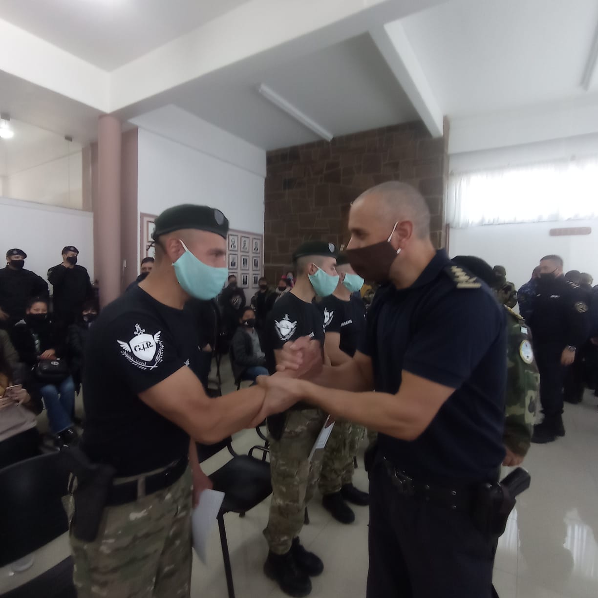 Durante el acto, se realizó la entrega de diplomas a los nuevos integrantes de este grupo especial; Sargento María San Martin, Cabo Mauricio Dalla Rosa, los agentes Miguel Ángel Condori, Marianela López Bowson, e Isaías Emanuel Meli. Además, a la agente López Bowson, le otorgaron el primer promedio del orden de mérito.