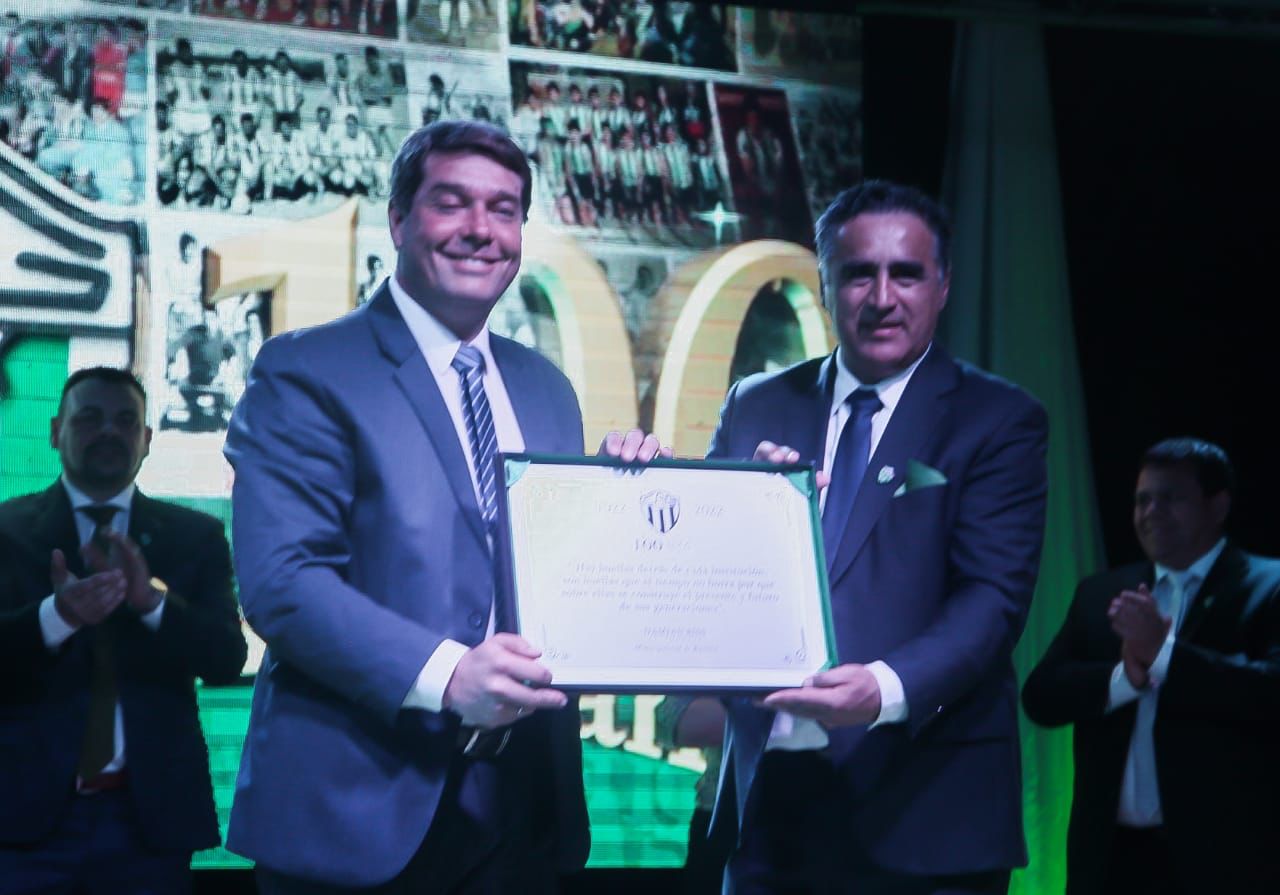 El intendente de Rawson, Damián Biss, participó este sábado en los festejos del centésimo aniversario del nacimiento de la institución deportiva de la ciudad Capital.
