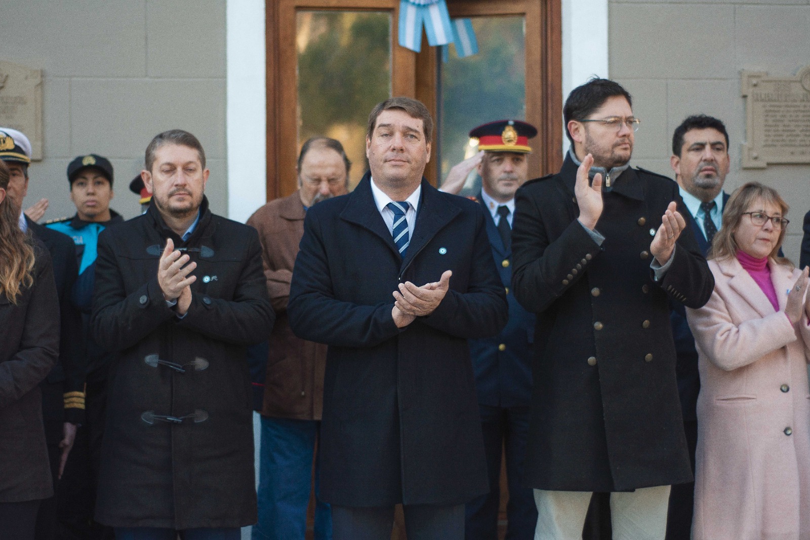 La ceremonia contó, además, con la presencia del presidente del Concejo Deliberante de Rawson, Dulio Monti, de concejales capitalinos, funcionarios municipales, representantes de las distintas Fuerzas Armadas y de Seguridad, Veteranos de la Guerra de Malvinas, establecimientos educativos y vecinos de la ciudad. También estuvieron presentes los números artísticos de la Pareja Tradicional Independiente Iris Ortíz y Pablo Casarosa; y los integrantes de la Escuela de Danzas La Querencia, Patricia Mellao y Alejandro Matamala. Además, se disfrutó de chocolate y tortas fritas.