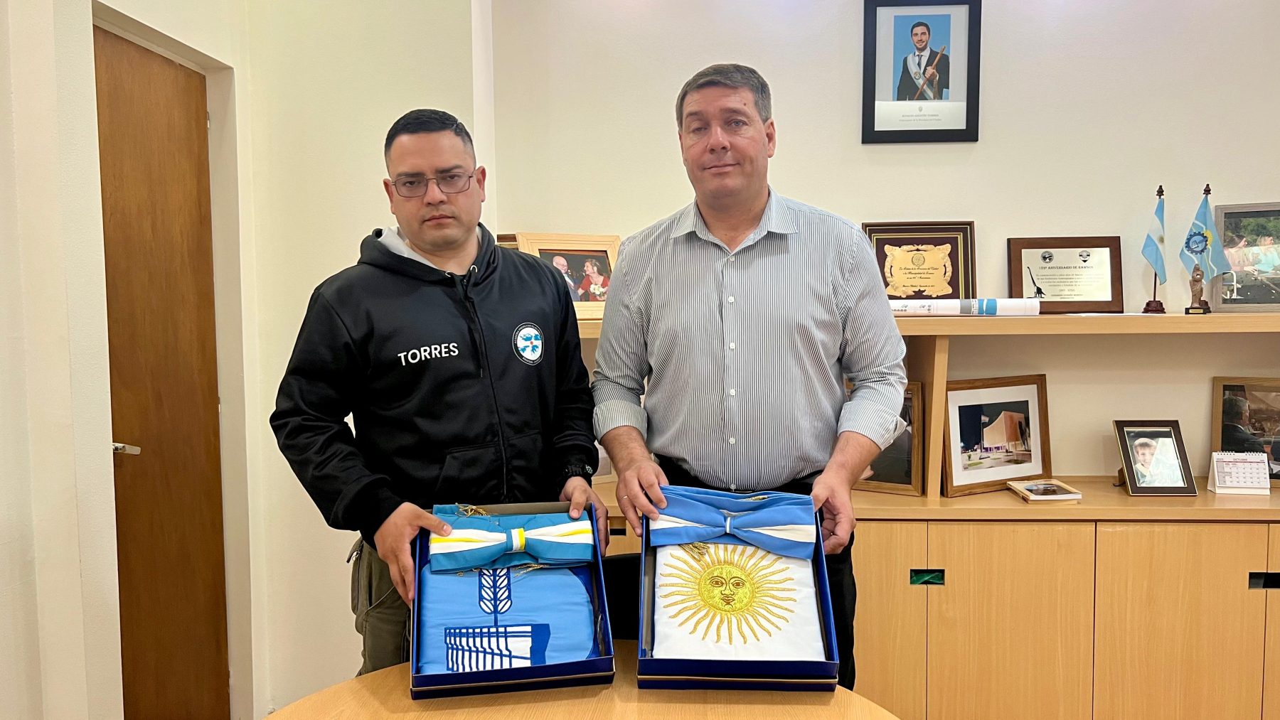 Fue con la finalidad de hacer entrega de las Banderas de Ceremonia de la Nación Argentina y la Provincial del Chubut.