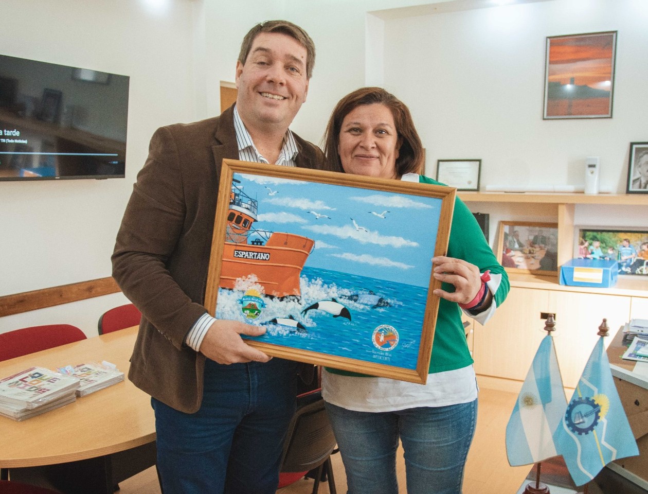 Al respecto, la jefa comunal, Patricia Tapia, expresó que “ha sido un encuentro muy fructífero, en donde conversamos de diversas cuestiones como las gestiones a realizar en Aldea Beleiro, como así también, generar una visita de estudiantes de la escuela que están próximos a egresarse a la ciudad de Rawson”. “Estamos muy agradecidos porque hemos recibido distintos presentes como material bibliográfico para los niños y niñas de la Aldea”, indicó Tapia.