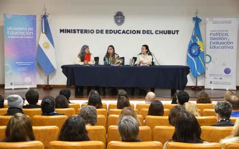 Además, contó con el acompañamiento de los subsecretarios de la cartera educativa, Silvia Reynoso, Rocío Silva y José Martín Alaniz; además de representantes de la Cooperativa de trabajo El Salto de Lago Puelo y la Asociación Conciencia Colectiva de Puerto Madryn.