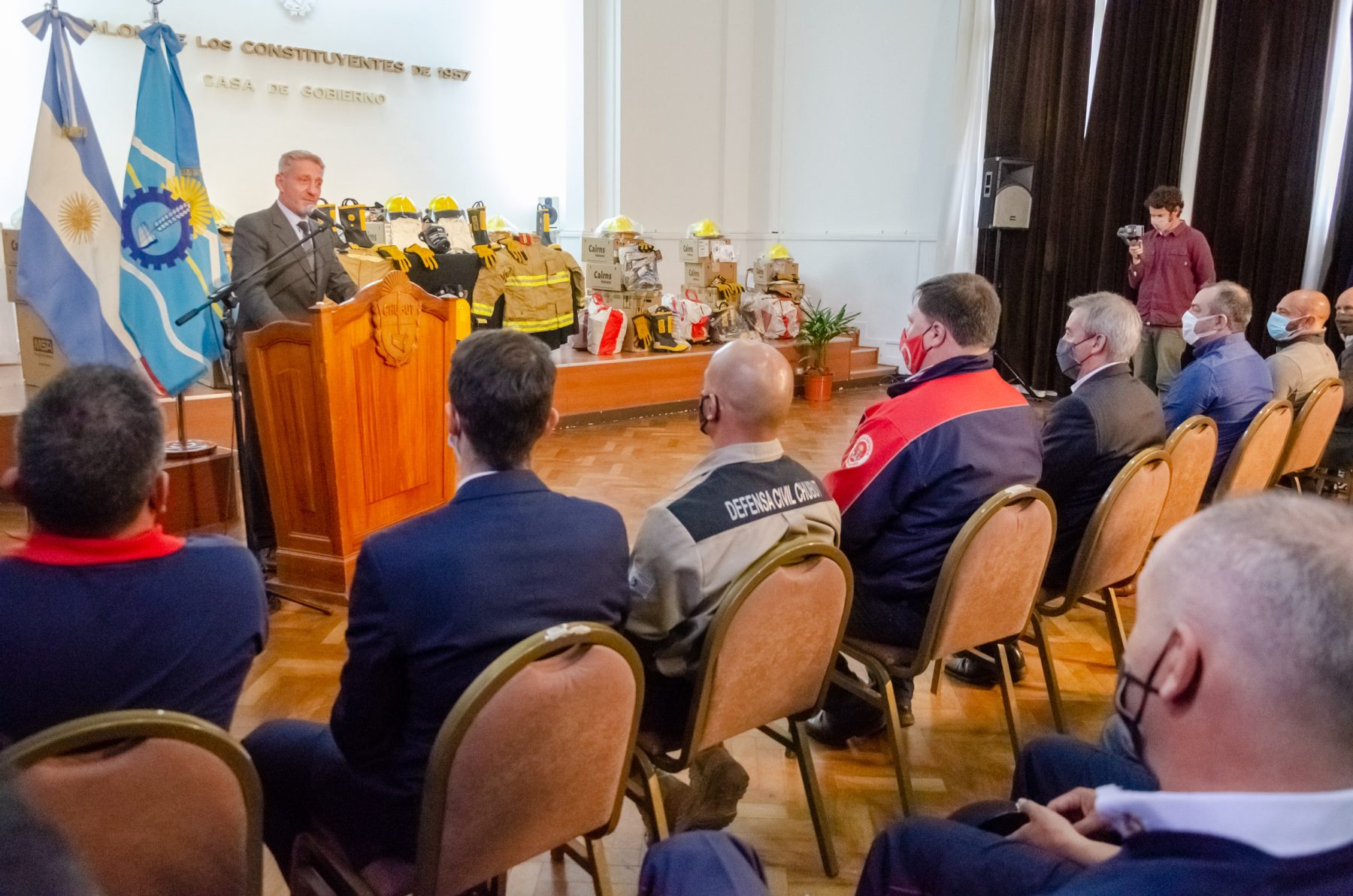 El secretario de Hacienda de Rawson, Martín Sterner, participó este jueves del acto de entrega de equipamiento para los cuarteles de Bomberos Voluntarios de la provincia del Chubut en representación del intendente, Damián Biss, que se desarrolló en el Salón de los Constituyentes de Casa de Gobierno en la ciudad capital.