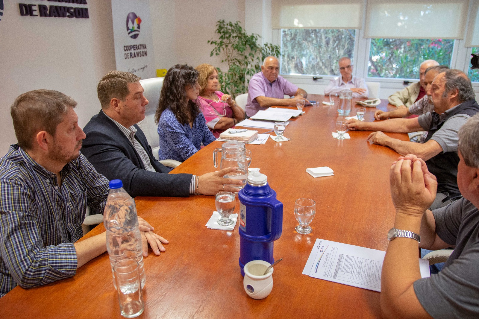 El intendente de Rawson, Damián Biss, participó de una reunión con la actual presidente de la Cooperativa de Servicios Públicos, Consumo y Vivienda Rawson Ltda., Cynthia Sanz; integrantes de la institución y representantes de la Asociación de Bomberos Voluntarios. También asistieron el delegado municipal, Luis Ramírez y el concejal Dulio Monti.