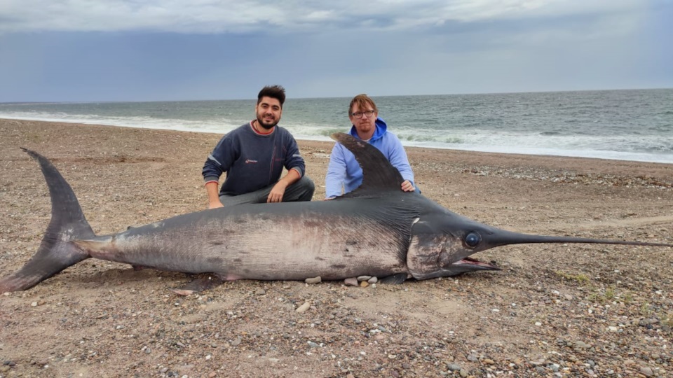 En diálogo con FM Bahía Engaño, Nélson Bovcon, doctor en Biología confirmó que el pez espada hallado varado en Puerto Lobos, era un ejemplar adulto de mas de cuatro metros, hembra y que es una rareza para estas latitudes por tratarse de un animal que vive en aguas mucho más cálidas,