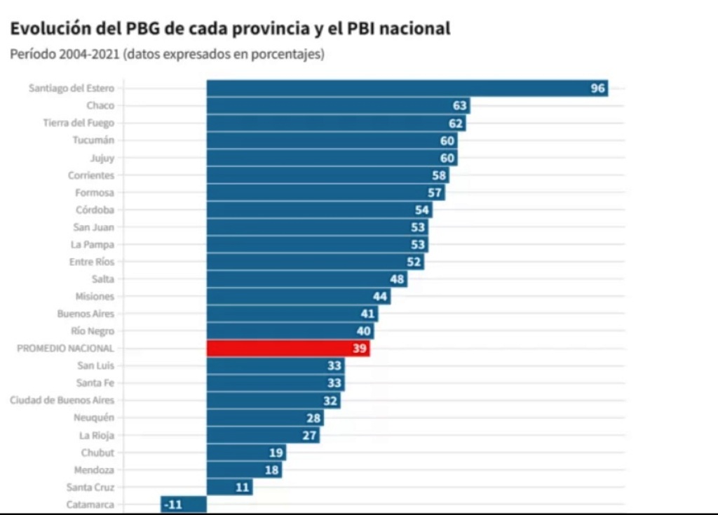 Un reciente informe de la Comisión Económica para América Latina (CEPAL) evaluó el desempeño de las diferentes provincias del país desde el 2004 a esta parte, analizando aquellas jurisdicciones donde se notó un crecimiento, frente al estancamiento y hasta caída del PBI de otras.