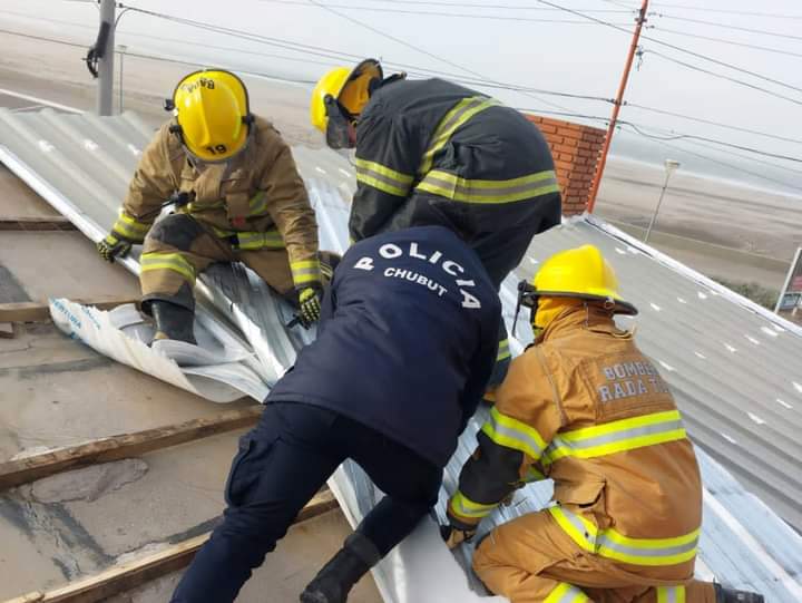Las asociaciones bomberiles de Puerto Madryn, Rawson, Trelew, Camarones, Rada Tilly y Comodoro, reportaron numerosas intervenciones socorriendo a vecinos e instituciones de sus respectivos municipios, principalmente te por voladura de techos y chapas, y caídas de postes en la vía pública.
