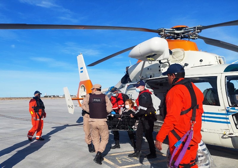 Personal especializado de la Prefectura Naval Argentina aeroevacuó a una tripulante de un buque pesquero que necesitaba atención médica urgente, mientras la embarcación navegaba a más de 370 kilómetros de Comodoro Rivadavia (Chubut).