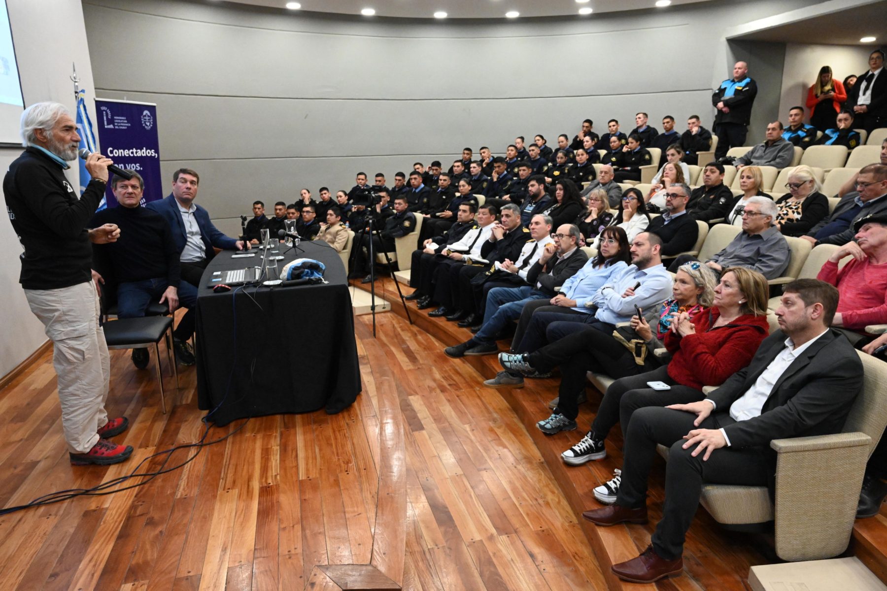 Fue este viernes, en el auditorio de la casa de las leyes. Y se llevó adelante por iniciativa del diputado provincial Fabián Gandón (Despierta Chubut) y capitán de Corbeta de la Reserva Naval Fuera de Servicio (RNFS), quien impulsó la declaración de Interés Legislativo del recorrido de 3.000 kilómetros que realiza a pie Tibaldi para homenajear en cada localidad a los 44 tripulantes del submarino siniestrado en noviembre de 2017.