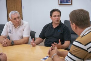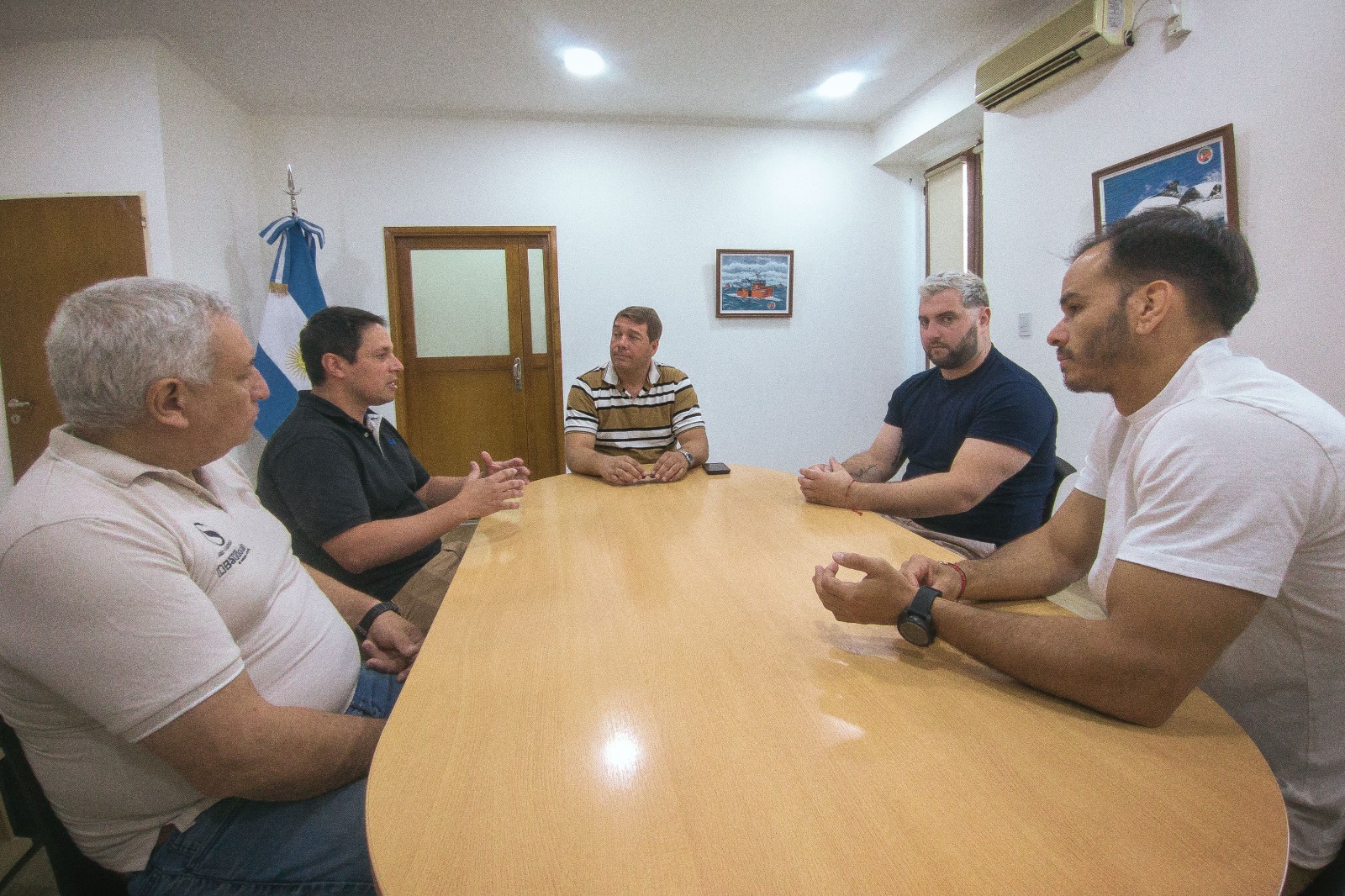 Del encuentro participaron el gerente comercial de la firma, Franco Pisa; el propietario de la empresa, Marcelo Pérez; y el gerente técnico en la zona del Puerto de Rawson, Bruno Singale. Durante la reunión, los representantes de la compañía expusieron los alcances de la iniciativa y los servicios que comenzarán a ofrecer en la ciudad, orientados a fortalecer la actividad portuaria y pesquera local.