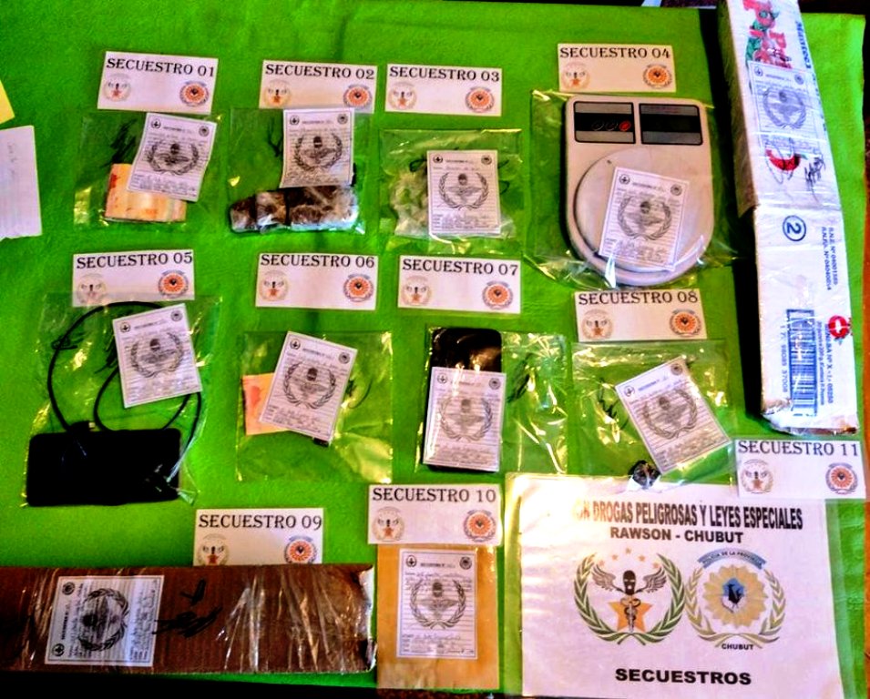 A través de la red social twitter la Policía del Chubut dio a conocer que la División Drogas Peligrosas y Leyes Especiales Rawson, realizó un operativo en el barrio Área 16 a través del cual se llevaron a cabo dos allanamientos y el registro de un vehículo.