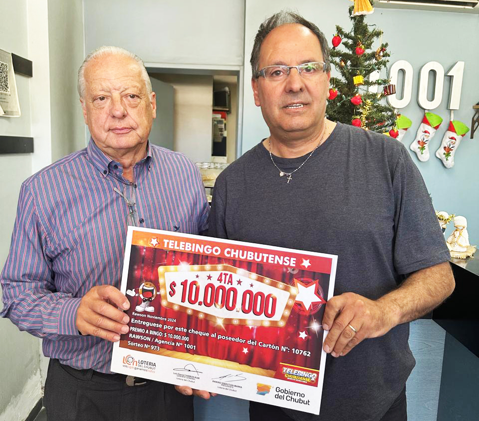 La entrega simbólica del premio de los 10 millones la realizó el gerente general del Instituto de Asistencia Social (IAS) Lotería del Chubut, Daniel Cambón Rubi, en la agencia 1001 de Eduardo Engrassi en la ciudad de Rawson; en tanto que el millón de pesos en Comodoro Rivadavia, lo entregó el gerente zonal de Lotería, Damián Pieroni, en la agencia 6013 de Nancy Harris.
