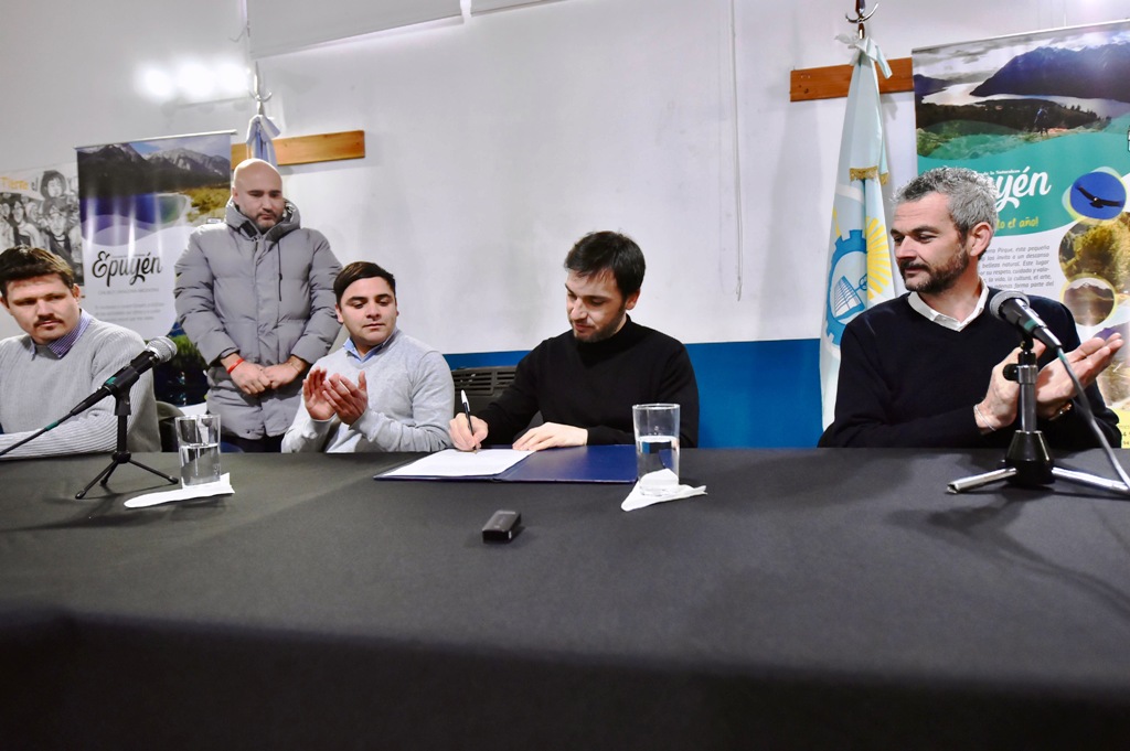 Del acto, desarrollado esta mañana en el Centro Cultural de Epuyén, participaron el intendente José Contreras; el secretario de Infraestructura, Energía y Planificación, Nicolás Cittadini; el subsecretario de Asuntos Municipales, Genaro Pérez y representantes de Esquel Construcciones S.R.L., empresa que tendrá a su cargo la ejecución de la obra; entre otras autoridades, diputados, trabajadores de la salud e intendentes de distintas partes de la provincia.