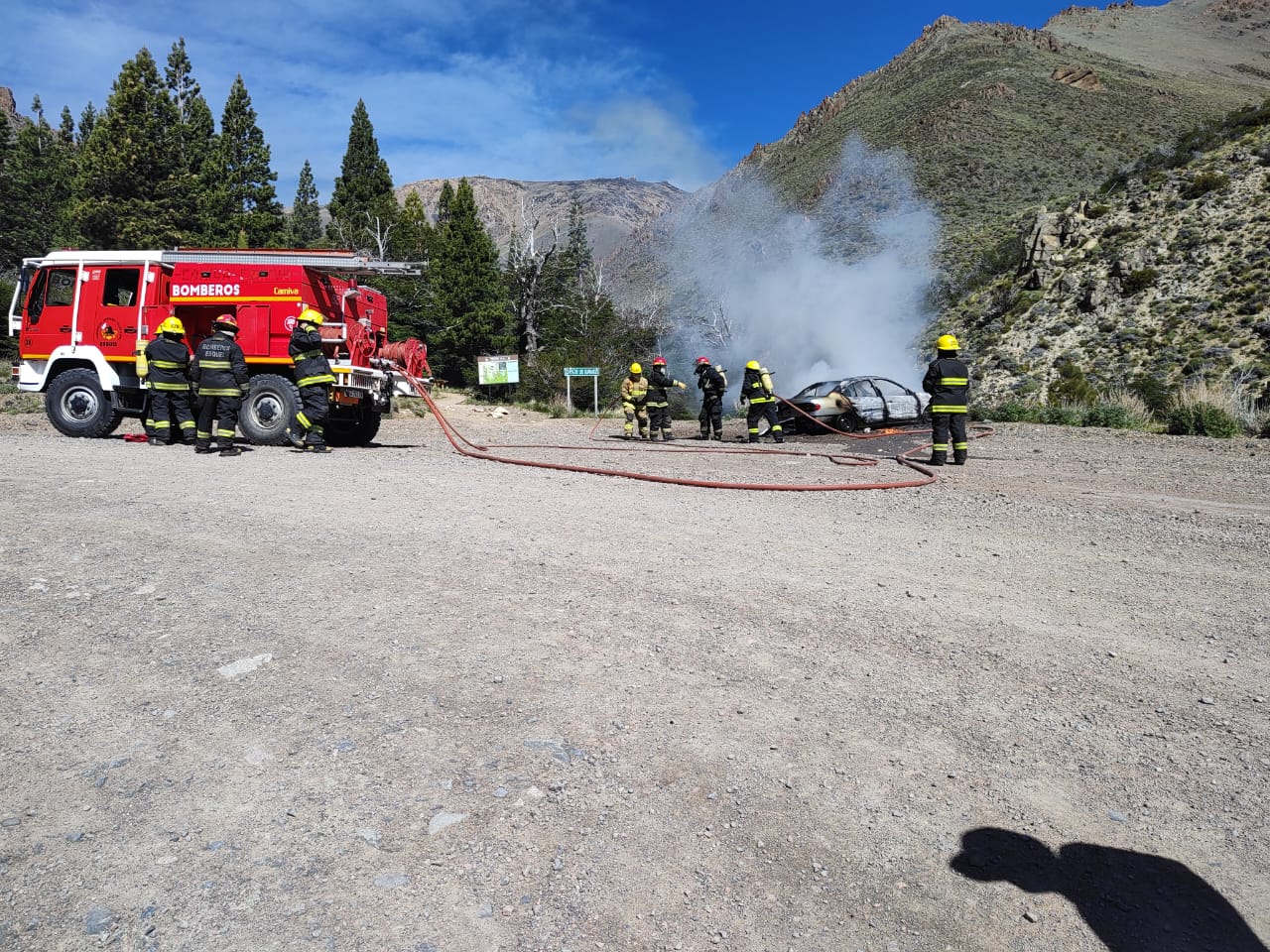 Dos automóviles se incendiaron en la tarde de ayer en la denominada Curva de los Guanacos camino a La Hoya cuando las llamas de un Renault Megane se propagaron a un Volkswagen Voyage que se encontraba a su lado.